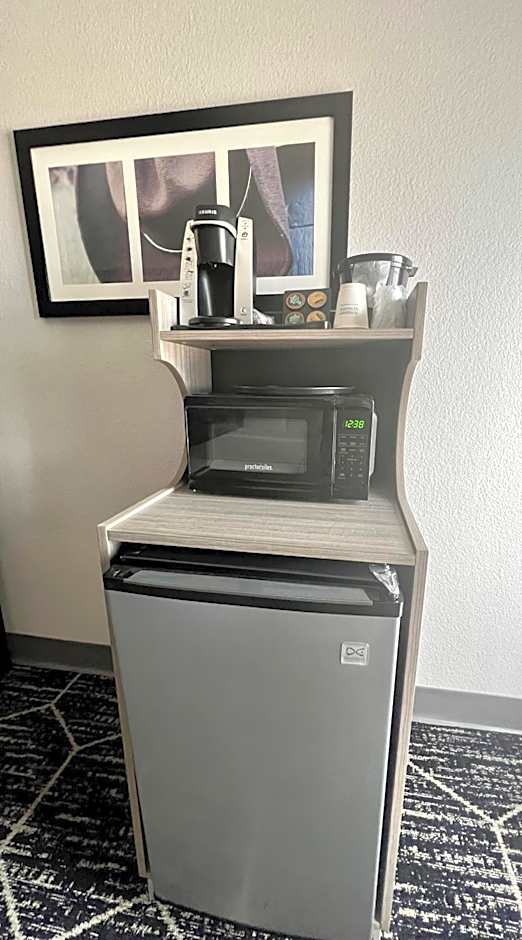 Featuring a 32-inch flat-screen cable TV, this room also offers a microwave and fridge.